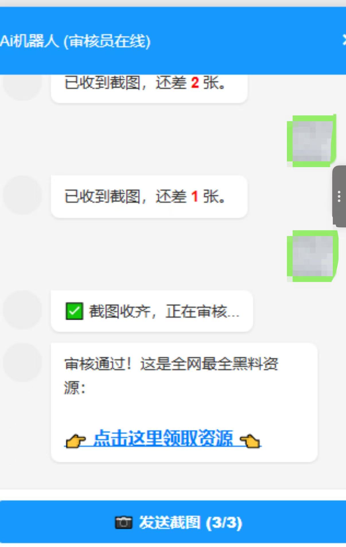 将你刚评论的截图发给右下侧的 Ai机器人 Ai机器人会在(10)秒内审核完,然后会在聊天框自动弹出所有资源的跳转网盘链接注意:不规范截图和上传重复截图将重置进度!已完成示例:👇👇👇